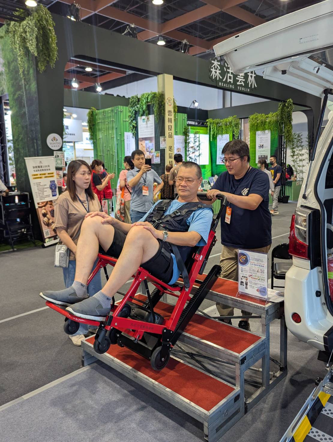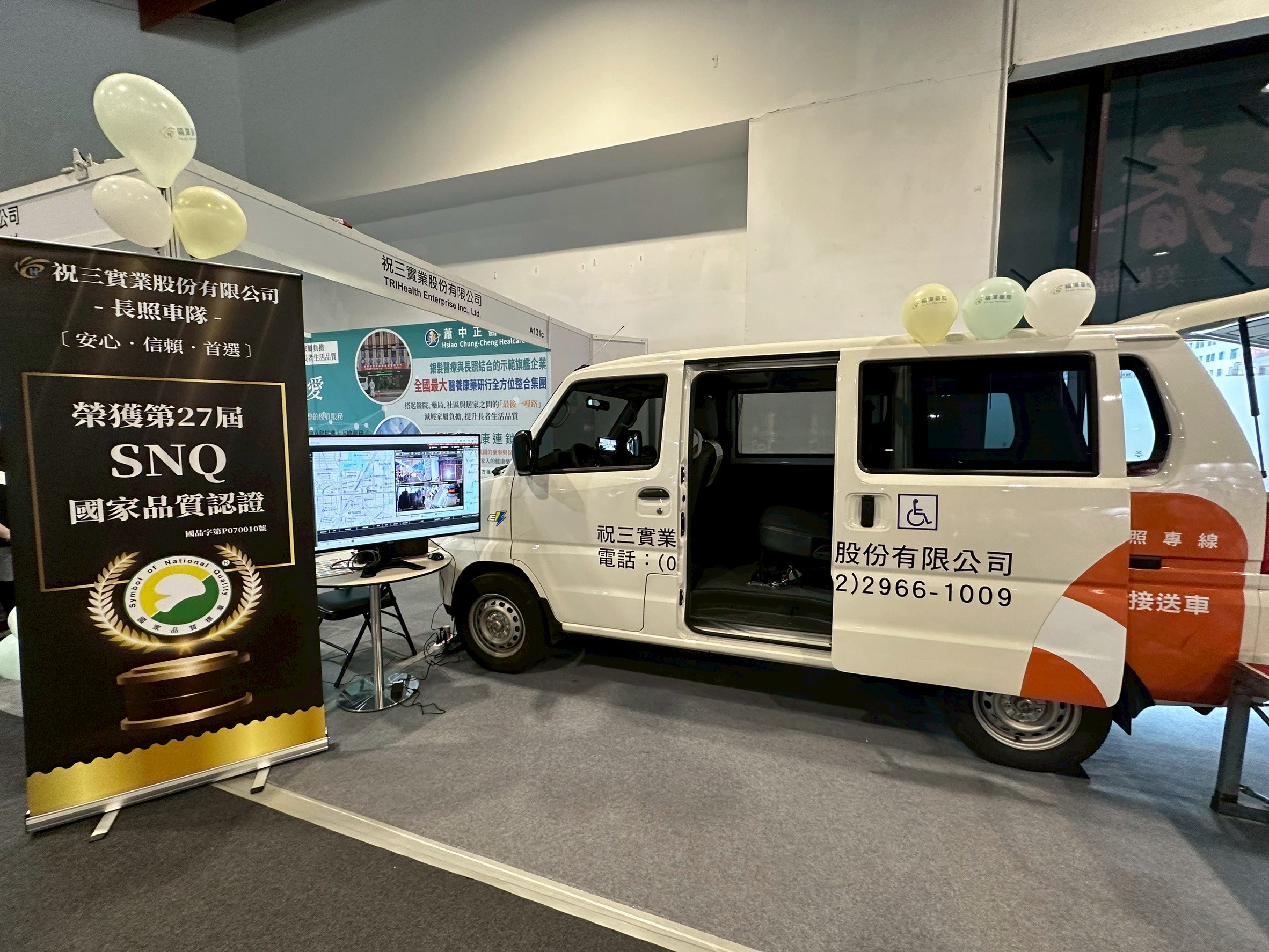 2025年,全台唯一通過SNQ國家品質標章認證的祝三長照車隊,今年首度參與高齡健康產業博覽會,打造完整的「無障礙出門體驗區」,現場開放體驗爬梯機、展示純電動福祉車,並提供預約流程諮詢,讓行動不便的長者與家屬親身了解:如何安全、安心地從家門一步步走到診間或藥局。